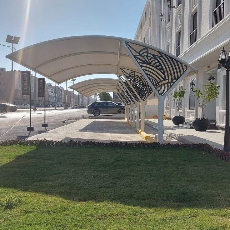 مظلات مواقف السيارات هي عبارة هياكل من معادن الحديد يتم تشكيلها بأشكال وتصاميم على حسب الطلب فمنها ويضاف إليها مادة خامة القماش لتغطيها بها وتظليل مواقف السيارات فهي تحمي السيارات من أشعة الشمس الحارقة والأمطار والثلوج والرياح القوية. كما تحافظ على جودة الدهان والتصميم الخارجي للسيارة، وتمنع تلاشي الألوان وتلف الداخلية بفضل التظليل الفعال الذي توفره المظلات.